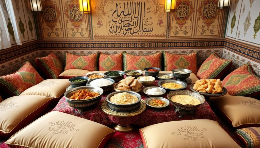 In Saudi Arabia, Islamic beliefs deeply shape dining customs. The concept of “halal” is key, guiding what Muslims can eat. Knowing these rules helps you enjoy Saudi food with respect.
