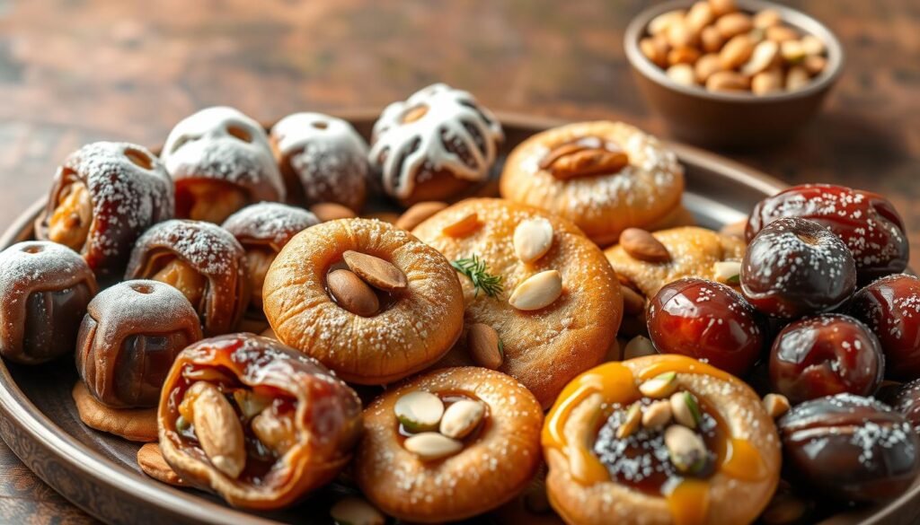 Dates are a big deal in Saudi Arabian cuisine. They’re not just food; they’re key in making amazing desserts. These sweets show off the area’s rich cooking history and the special techniques and tastes passed down through generations.